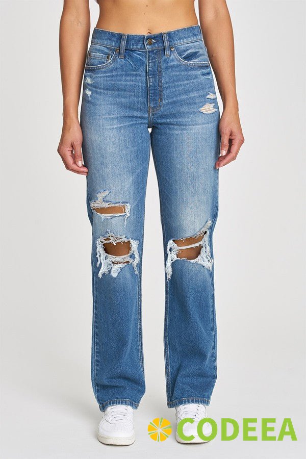 Calla Blue Distressed Relaxed Staright Leg Denim Jeans
